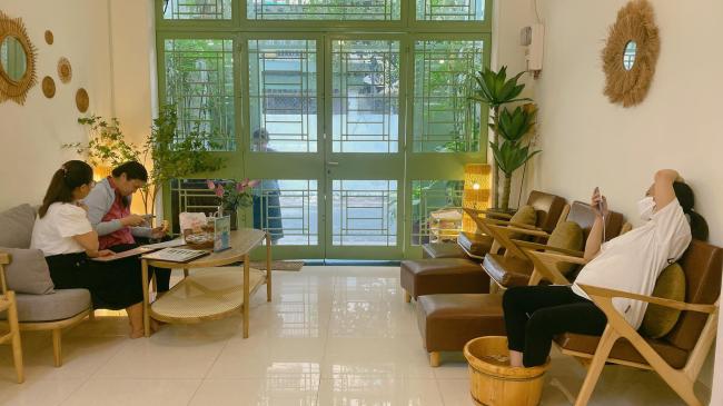 - Gội đầu dưỡng sinh:là chăm sóc tóc và da đầu một cách đặc biệt, kết hợp với việc massage vùng đầu, vai gáy, cổ, lưng,…làm sạch da đầu và tóc với các dầu gội thảo dược từ thiên nhiên như sả, bồ kết, vỏ bưởi, quế,…